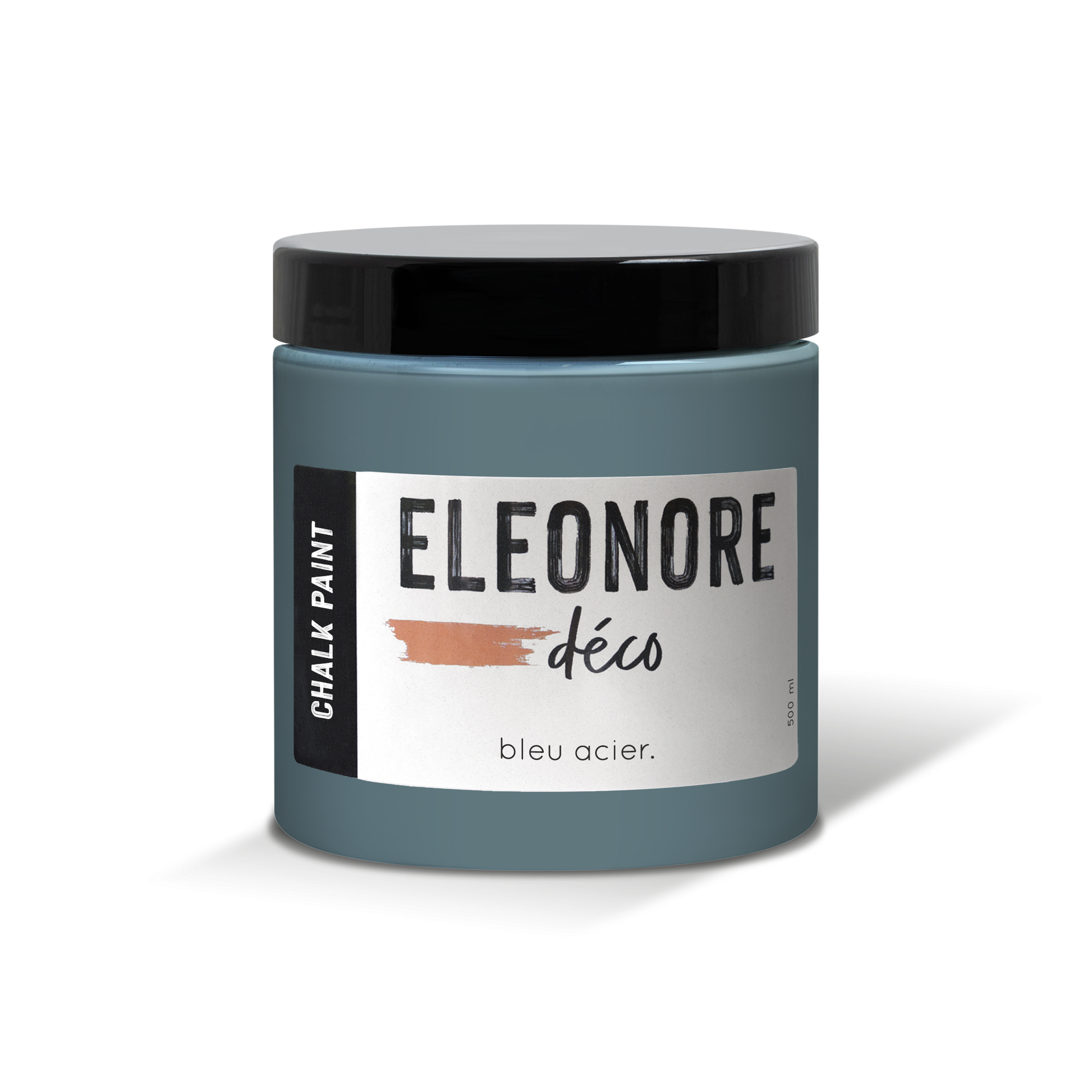 La Peinture à la craie Bleu Acier d’Éléonore Déco est un bleu gris profond et intense au tempérament affirmé qui apporte caractère et modernité à vos meubles.