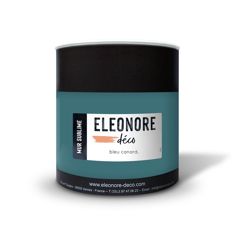 Habillez vos murs avec notre peinture Mur Sublime Bleu Canard, véritable bleu-vert profond, lumineux, plus vif que Cyprès bleu. La peinture Bleu Canard colore avec puissance, elle sublime et flatte les décos actuelles. Parfaite avec les clairs.